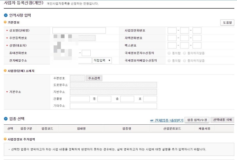 사업자등록신청(개인)방법(오프라인,온라인가능)