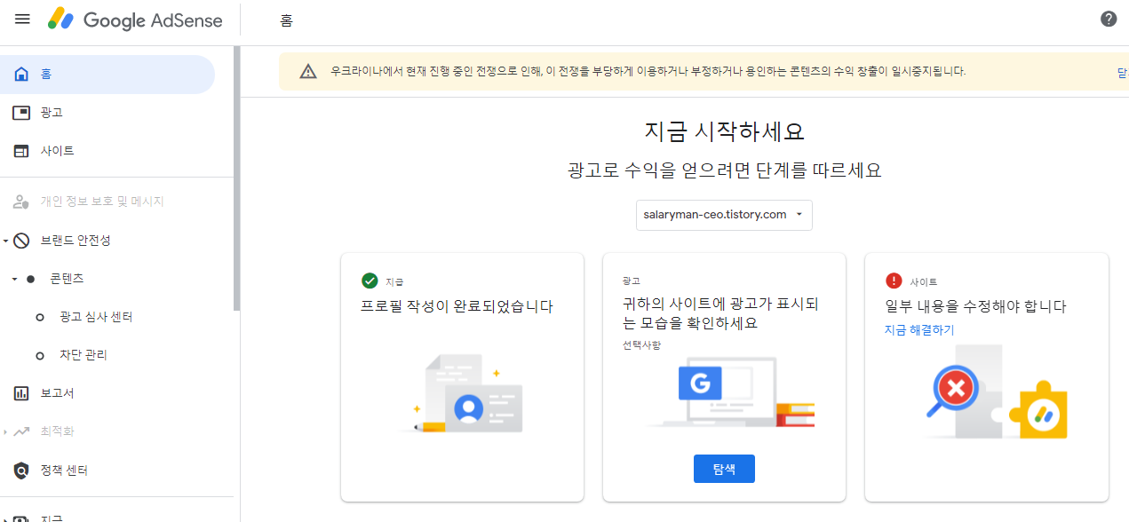 이제 애드센스를 다시 신청하세요.