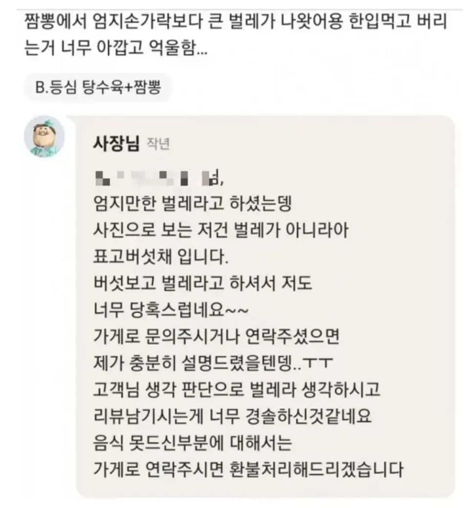 가게 측은 “사진에 보이는 것은 벌레가 아니라 표고버섯이다”라고 답했다.