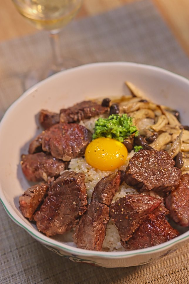 예전에 일본에서 먹었던 스테이크 덮밥이 생각나서 요리해봤습니다.