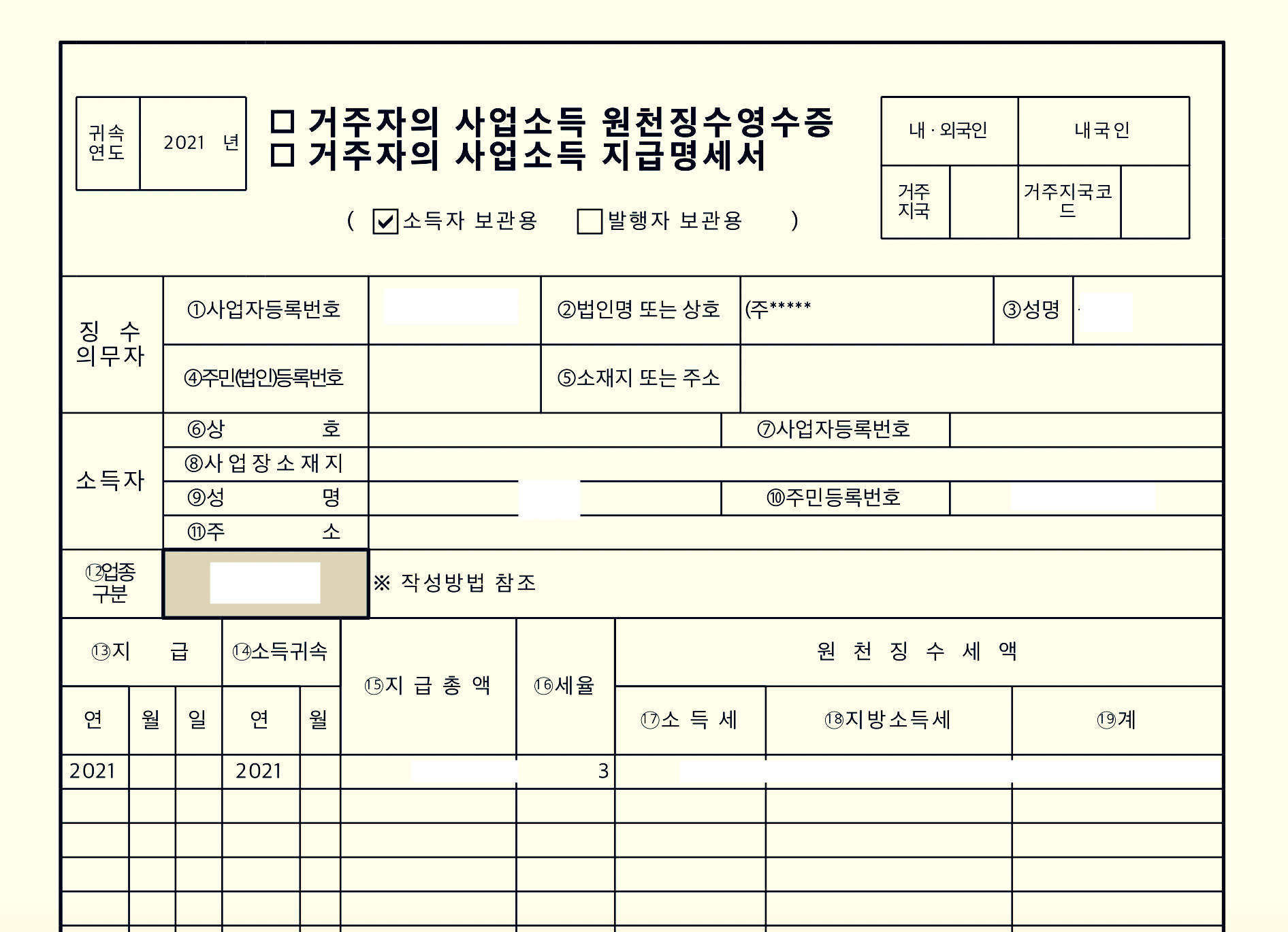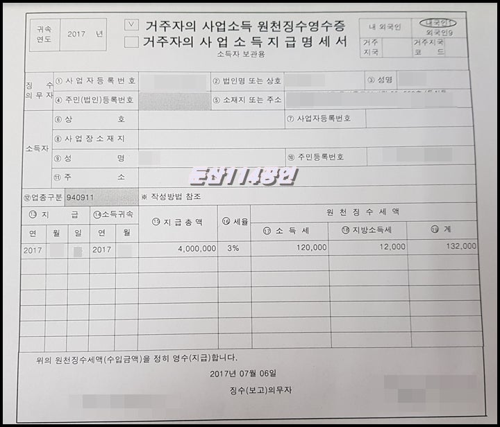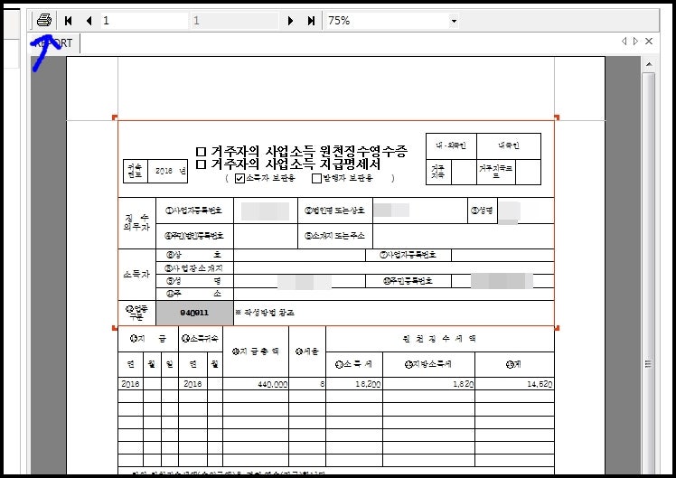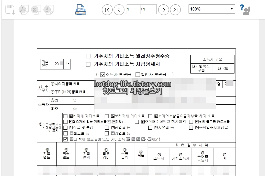 프리랜서사업소득원천징수영수증