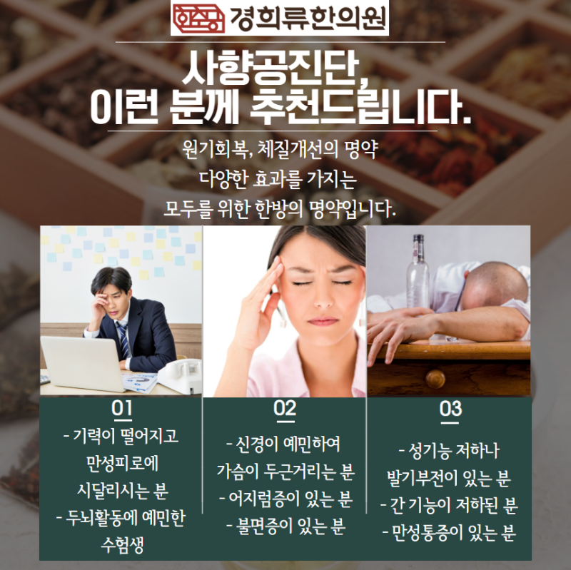 매일백세한의원 공진단 행사* 안녕하세요 매일백세한의원 원장 송원석입니다. 최고의 한약재로 만든 공진단을 오픈한 한의원입니다. *공진단 소개, Q&A : https://blog.naver.com/candicevtkho/222853280250 *공진단 설맞이 행사(23, 1월 23일까지) 30개 지역 * 2세트 13만원 할인 : 이용료 59만원 *과정 1. 설문지를 제출하시면 (카카오톡 문의→전화상담→계좌입금, 카드결제→퀵배송) 순으로 진행됩니다. 2. 꼭! ! ! 질문 접수 후 – 카카오톡 채널 “일일백상한의원” -> http://pf… docs.google.com