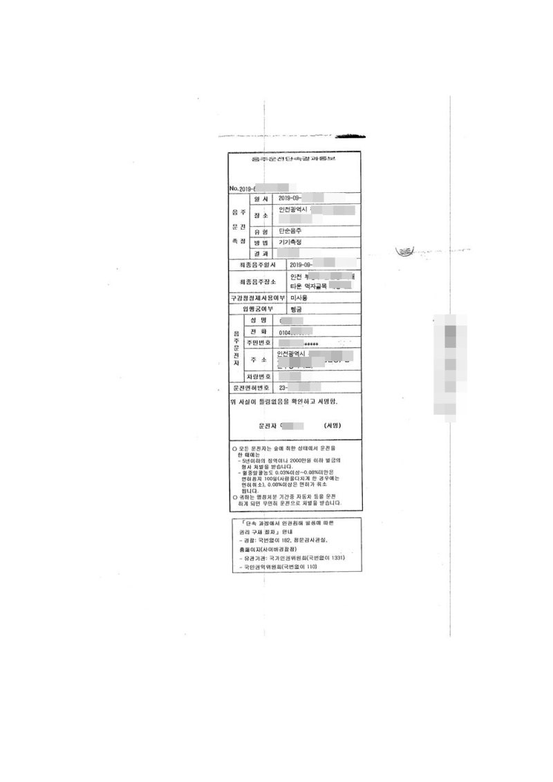 2.양당사자 주장 행정심판청구인은 「도로교통법」 제93조 제4항에 의하면 음주운전에 의한 운전면허취소 행정처분에 앞서 처분당사자에게 처분내용 및 의견제출기한 등의 사전통지를 하여 의견진술의 기회를 주어야 한다고 되어 있음에도 이 사건 당일 경찰관이 “혈중알코올농도 0.100% 이상이면 운전면허취소에 해당한다”고 고지하고 “약 일주일 후 경찰서에서 전화를 하면 조서를 받으러 나오라”고 통지한 후 “음주운전단속결과통지”를 교부하면서 청구인의 통지한 사실도 사전통지하였다. 또 청구인은 피의자 심문을 위해 경찰서에 출석해 사전통지서에 서명했는데 서명 후 경찰이 이를 회수해 나가 사전통지서는 출석기일 이전에 발급돼야 하는데 이 사건 처분 사전통지서에는 출석기일이 발급일과 같은 날짜로 돼 있다. 따라서 적법한 사전통지 없이 행한 이 사건 처분은 절차상 하자가 있으므로 위법 부당하다.