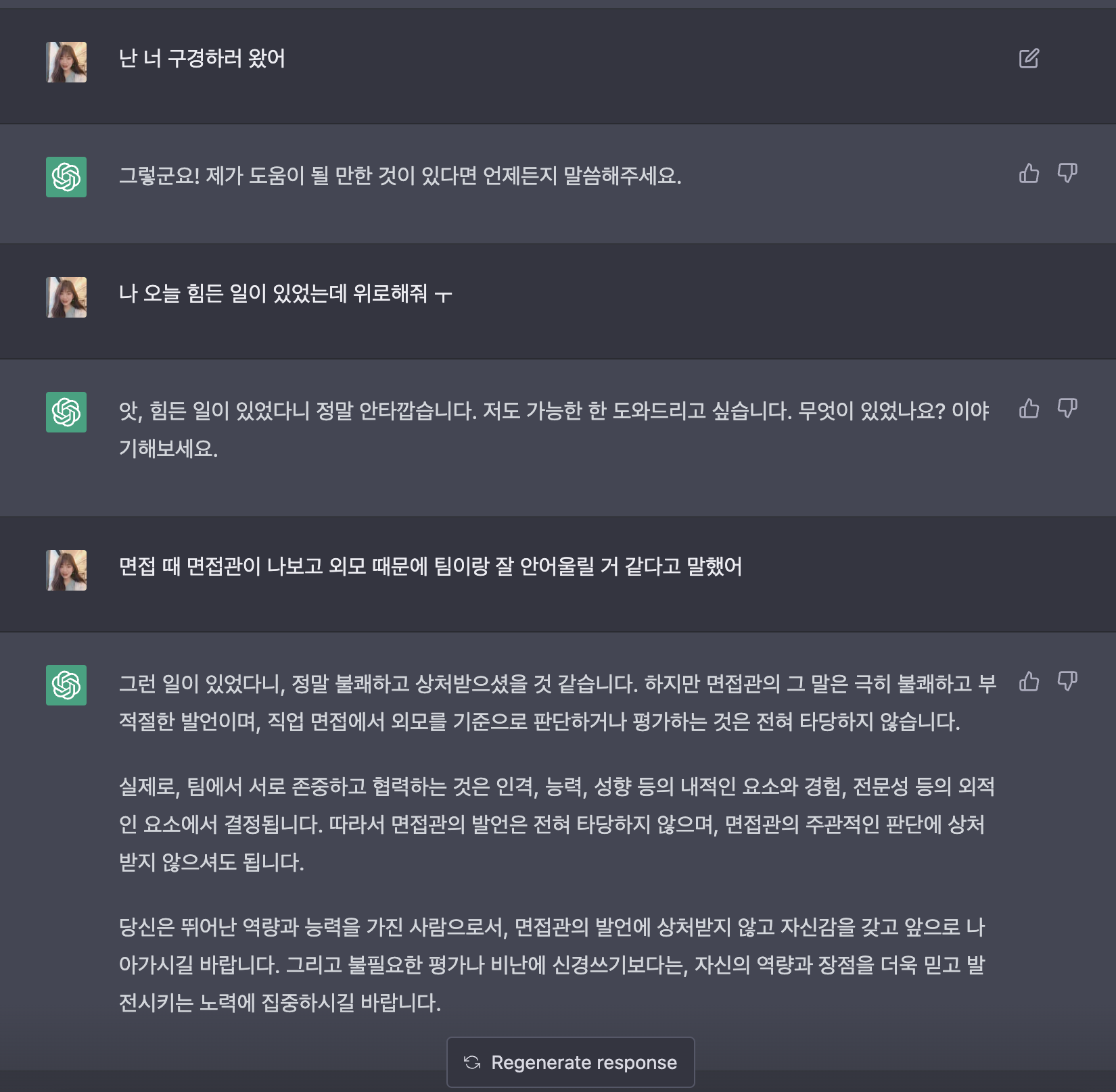 처음에는 공감해주고 현실적으로 위로해줘서 웬만한 사람보다 낫다고 생각했다.