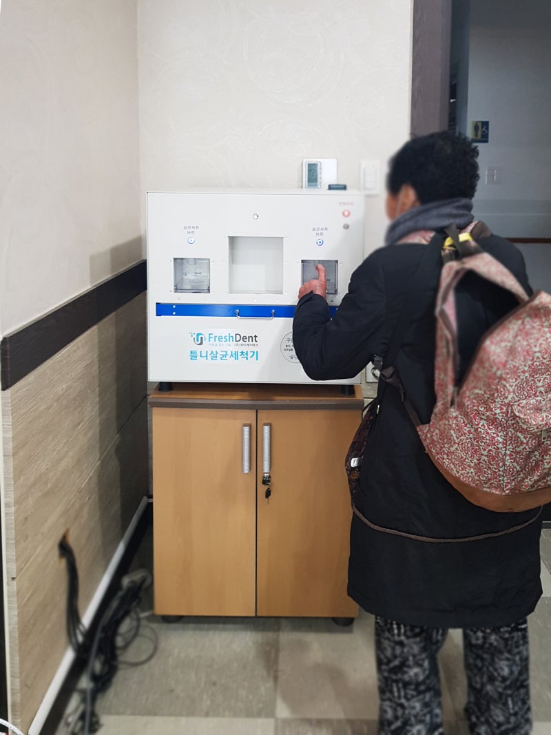 틀니 세정기 설치 사진 틀니 살균 세정기는 개인용 일회용 컵을 사용하며, 인체에 무해한 친환경 살균 세정수를 사용하여 세정과 악취제거, 살균을 동시에 합니다. . 특히 의치살균세정기는 사용이 간편하여 누구나 약간의 학습만으로 사용이 가능하며 한번의 세척으로 99.9%의 살균효과를 볼 수 있습니다. 설치 장소는 ▲의료원 건강증진센터 ▲중산면 보건소 ▲남양면 보건소 등이다. 틀니를 사용하는 사람이라면 누구나 무료로 이용할 수 있다. 또한, 청양의료원에서는 구강건강 교육, 올바른 틀니 관리 교육, 틀니 소독 및 세척, 틀니 칫솔, 틀니 세정제 및 틀니 보관함 제공, 구강 건강 및 저작 기능 향상을 위한 정기적인 구강 건강 관리를 실시하고 있습니다. . . (담당부서 : 청양군보건의료원)