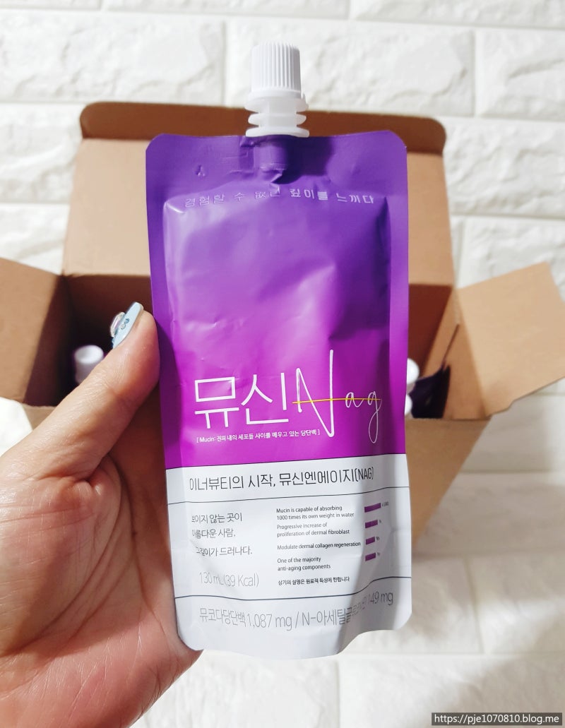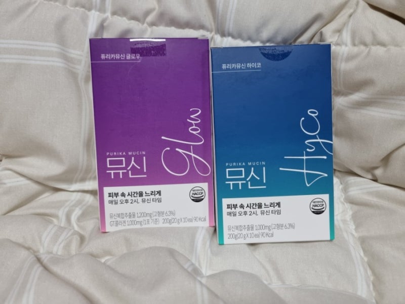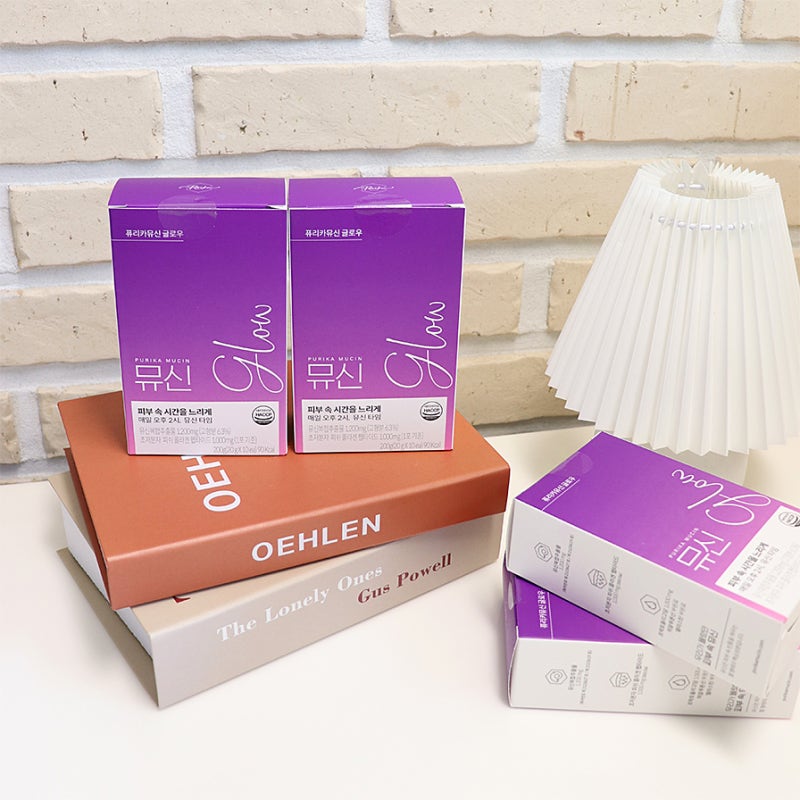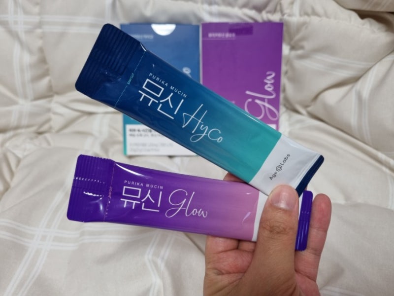 8년간의 연구가 담긴 방목형 농장에 에이지@Labs Inc만의 특허 기술을 담아 완성한 원료이자 브랜드인 퓨리카뮤신퓨리카뮤신 패키지 색상이 다른 이유는 주성분 함유량이 조금 다르기 때문에 연령에 맞게 선택할 수 있다는 것-뮤싱글로우(보라색)가 특허뮤신 성분과 저분자콜라겐 함량이 조금 높아 35세 이상에게 추천!35세 이하는 뮤신하이코(파란색)를 추천드립니다. 흐흐흐흐