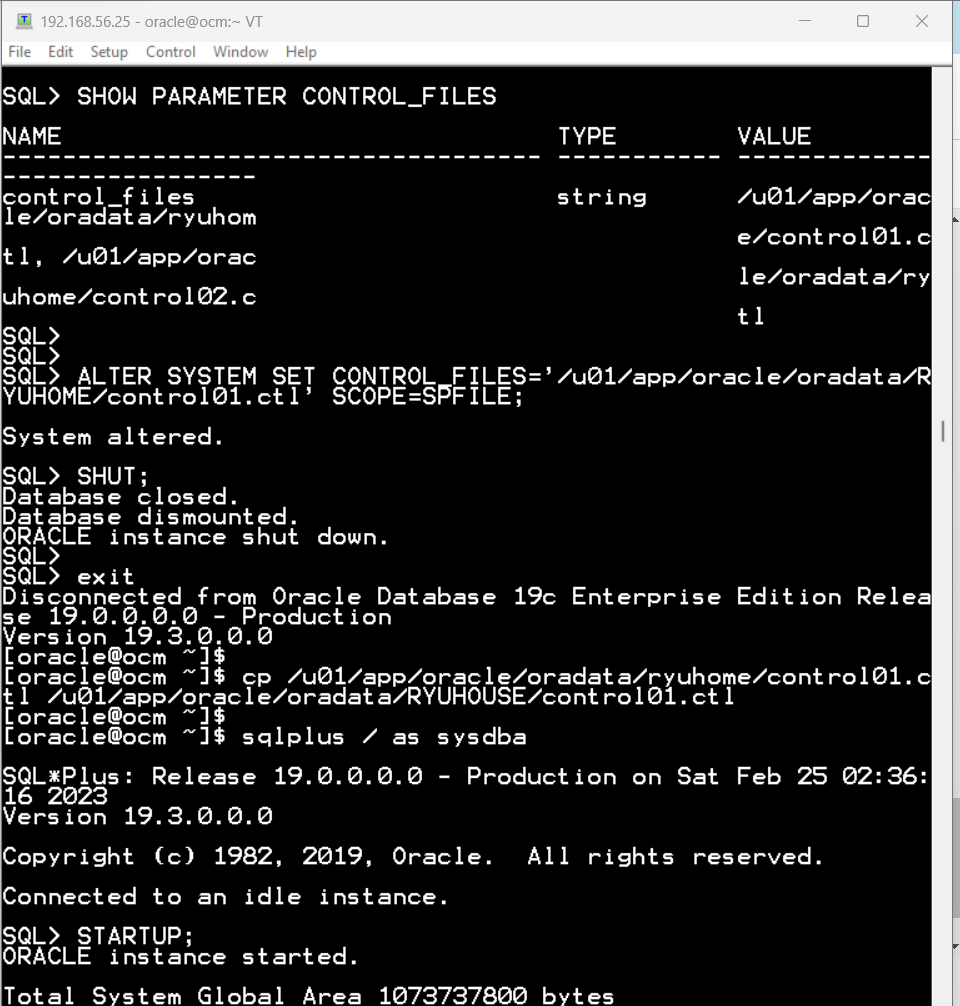 $ cp /u01/app/oracle/oradata/ryuhome/control01.ctl /u01/app/oracle/oradata/RYUHOUSE/control01.ctl