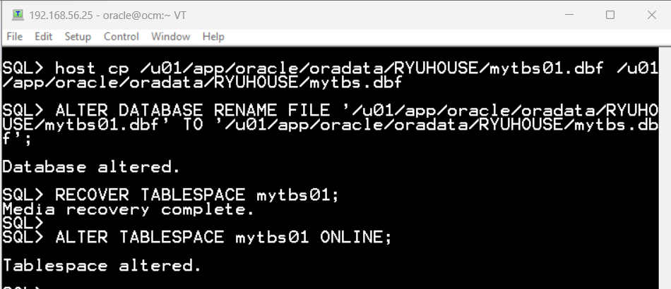 host cp /u01/app/oracle/oradata/RYUHOUSE/mytbs01.dbf /u01/app/oracle/oradata/RYUHOUSE/mytbs.dbf