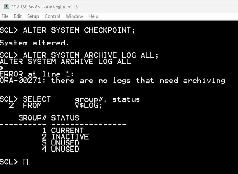 ALTER SYSTEM ARCHIVE LOG ALL;