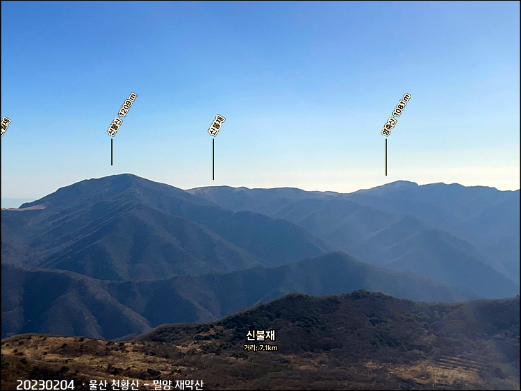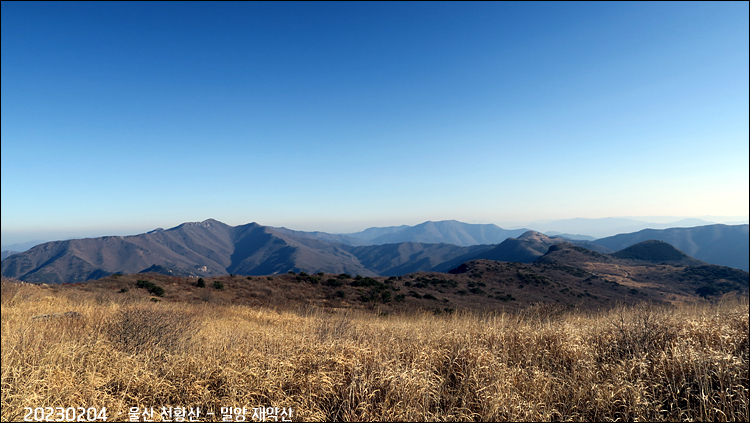 천황산 정상 앞에는 큰 나무가 없어 조망이 쾌적하다.