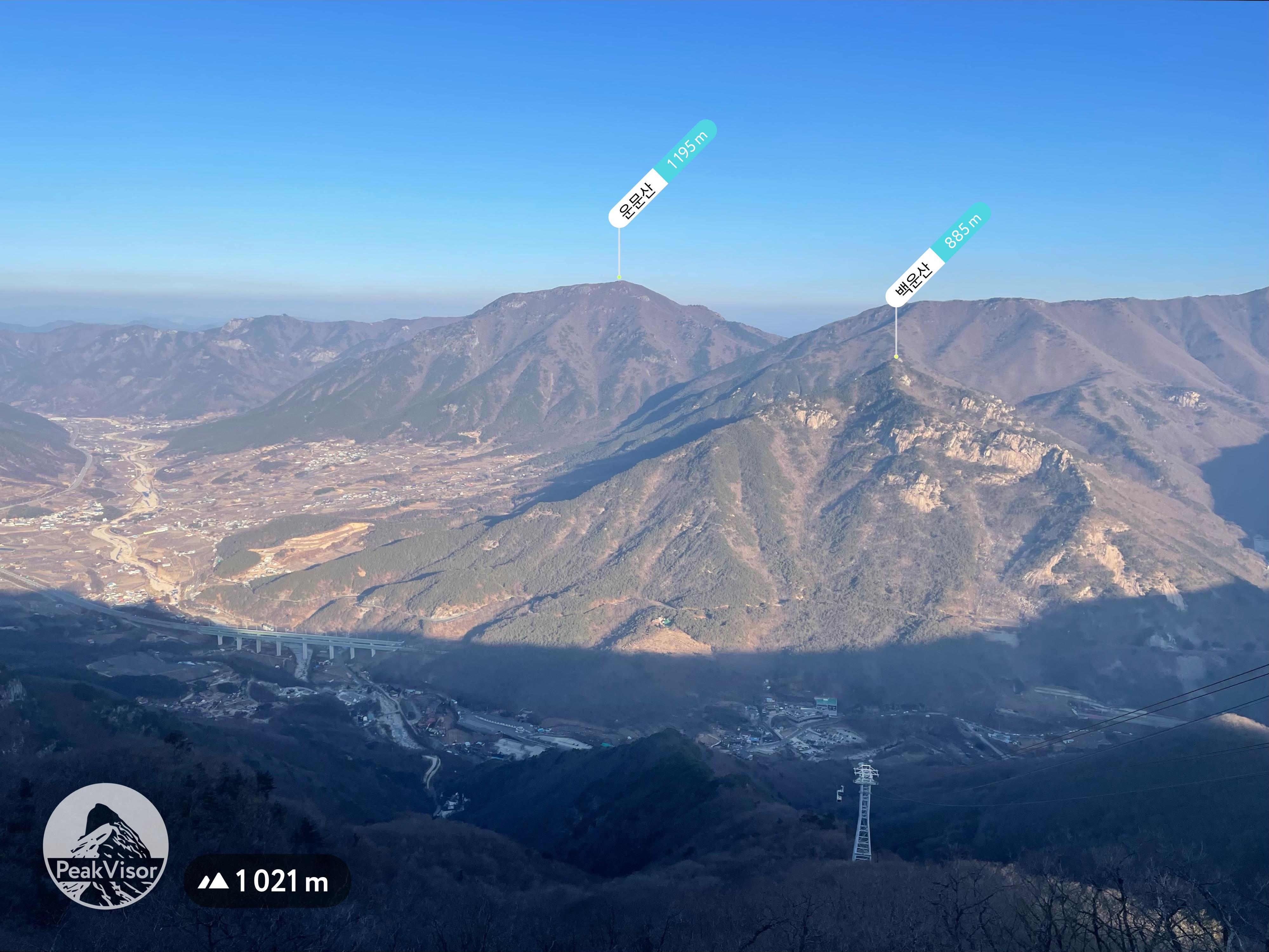 케이블카에서 바라본 운문산과 아래 상양마을.