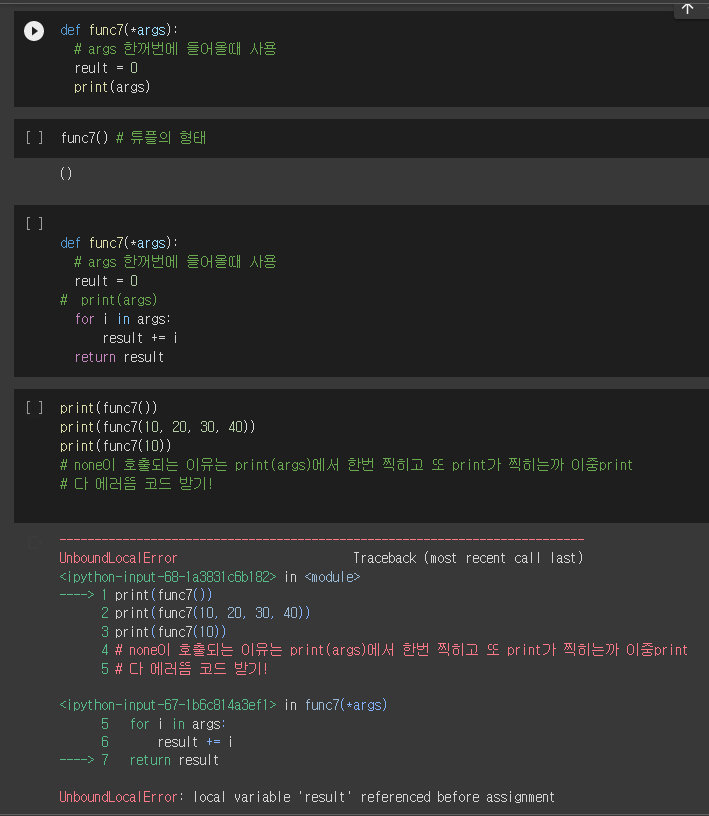 변수 매개 변수를 전달할 때 함수에서 튜플 형태로 사용됩니다.