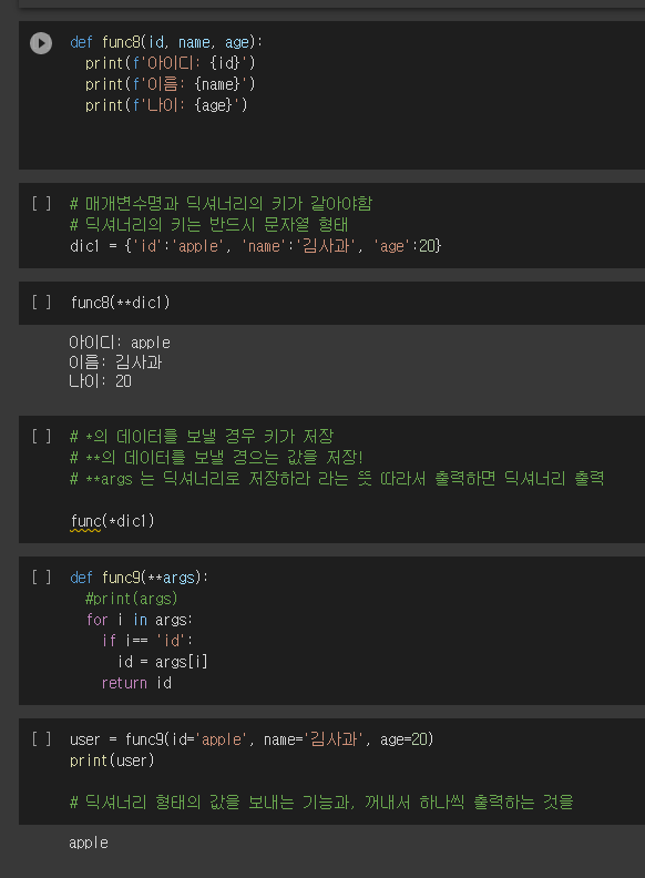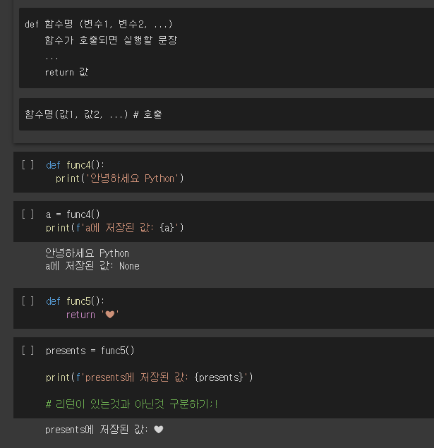 변수 = 함수명(변수1 = 값1, 변수2= 값2...) # 호출